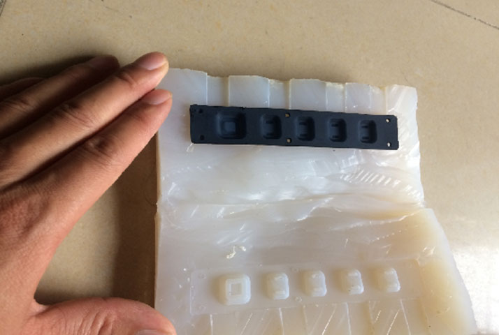 The mold is made of silicone rubber and uses CNC or SLA parts as a master pattern.